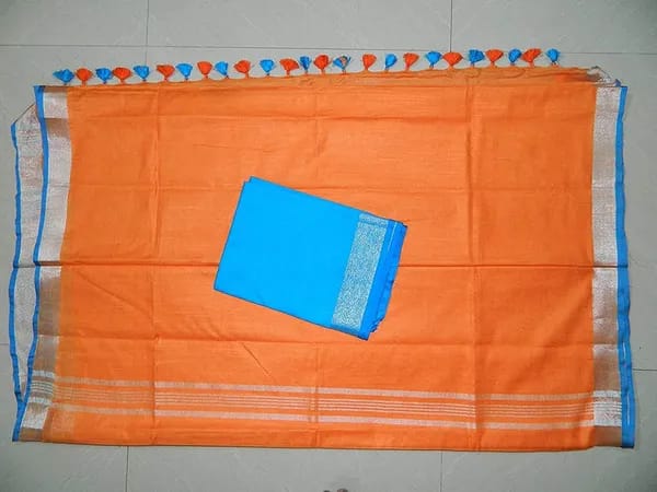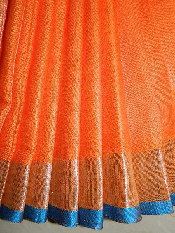 Orange women’s Bhagalpuri Blend Linen Saree With Free Contrast Blouse Piece